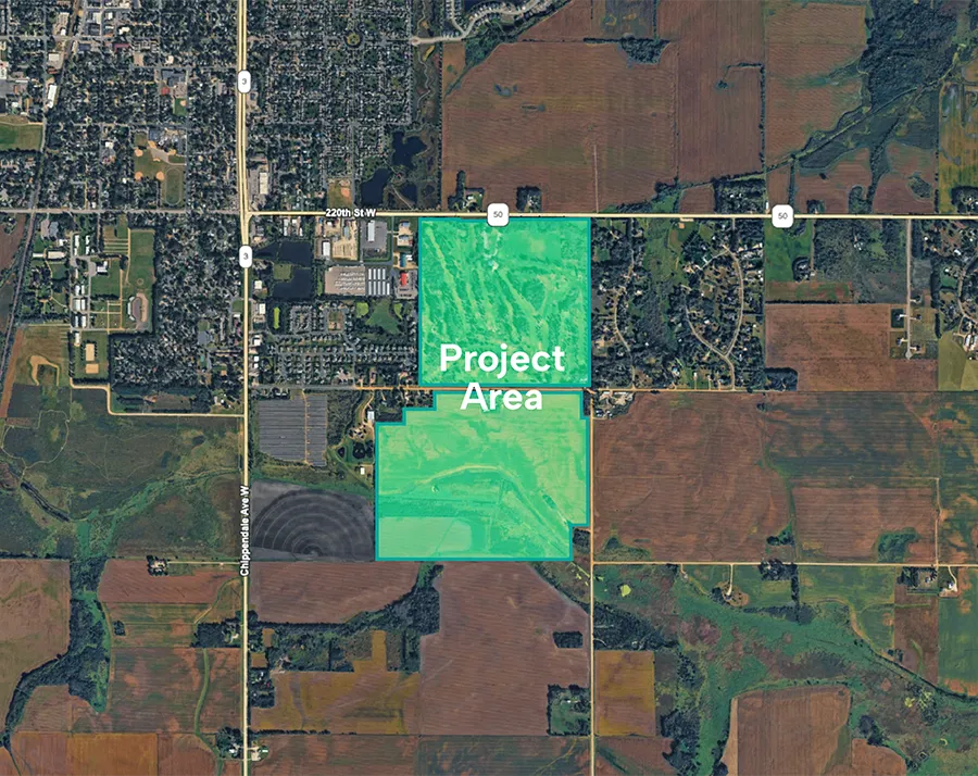 Farmington Technology Park is a master-planned data center campus on 336 acres located in the southeast corner of the City of Farmington. The property located at 2830 220th St W was purchased by Tract in February of 2026. This project will: